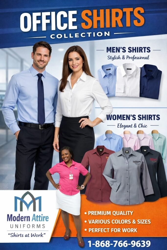 Elevate Your Corporate Identity with Custom Executive Wear Premium, stylish uniforms designed for the modern Trinidadian professional. Combine comfort with a sophisticated office aesthetic. See Collection Ladies Shirts Browse Professional Uniforms From office to hospitality we stock uniforms for every profession. Browse All Uniforms Ladies Suits and Jackets STYLE NO: J1055 JacketsInquire Now Embroidered Logos Embroidered LogosInquire Now STYLE NO: J1070 UncategorizedInquire Now STYLE NO: J1025 Jackets, Professional UniformsInquire Now Professional Uniforms STYLE NO: J1055 JacketsInquire Now Embroidered Logos Embroidered LogosInquire Now STYLE NO: J1070 UncategorizedInquire Now STYLE NO: J1025 Jackets, Professional UniformsInquire Now